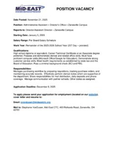 Administrative Assistant – Directors Office Zanesville Campus