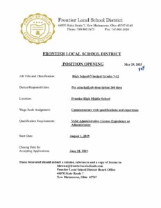 Frontier High Middle School Principal Posting 2025-2026