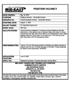 Welding Instructor – Zanesville
